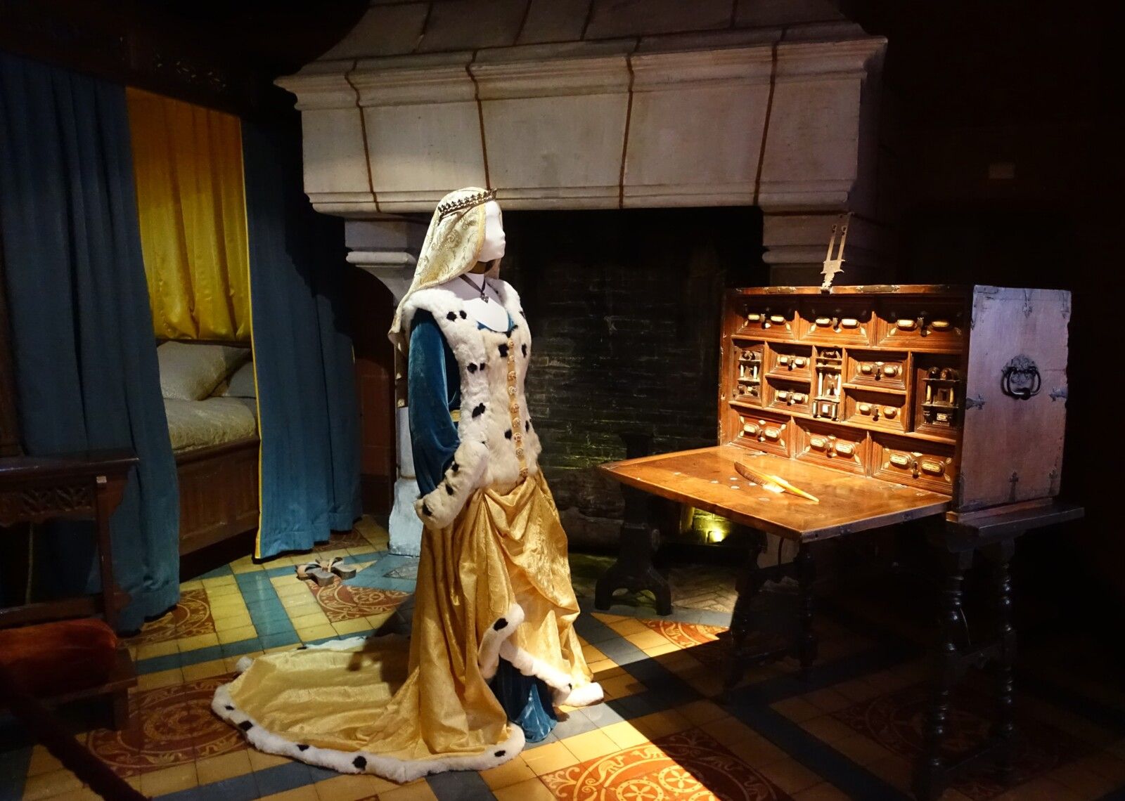 Montez au premier étage pour découvrir la Chambre de Parement, avec ses meubles richement sculptés et ses tapisseries luxueuses, où s'organisait la vie quotidienne au Moyen-Age ; la Chambre de retrait ; puis la Salle du Mariage qui propose une scénographie représentant le mariage de Charles VIII et d'Anne de Bretagne, union capitale marquant le début du rattachement de la Bretagne à la France.