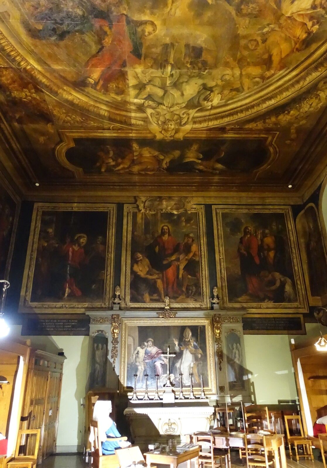 Continuez la visite par la Salle Sainte Anne qui comprenait à l'origine 4 lits réservés aux âmes nobles et qui évoque désormais la lingerie d'autrefois ; puis par la Salle Saint Hugues, créée en 1645, qui fut de tout temps affectée aux malades et dont le plafond représente le Miracle de la piscine de Bethzaïda.
