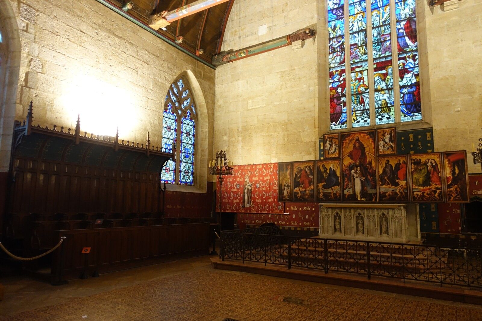 Accédez à la Chapelle qui fait partie intégrante de la salle des Pôvres et symbolise la parfaite symbiose entre l'aspect religieux et médical de l'Hôtel-Dieu. C'est dans cette chapelle que prenait place, à l'origine, le fameux Retable du Jugement dernier peint par Rogier van der Weyden.