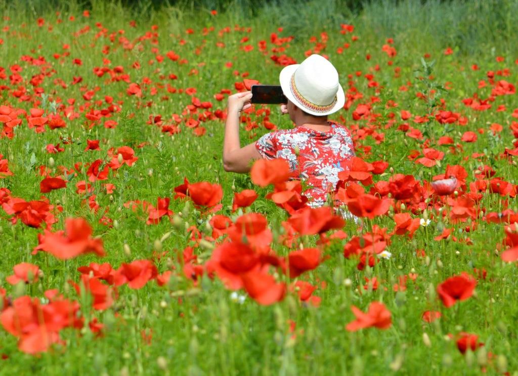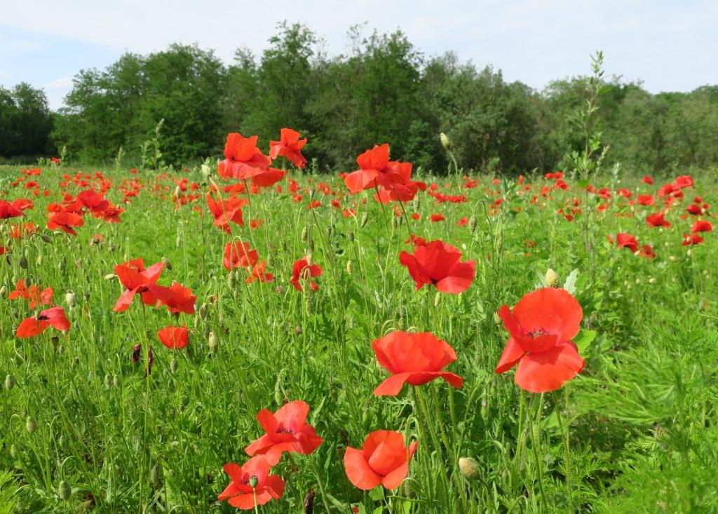 Nous apercevons le village de Martignargues, marchons jusqu'au Moulin de la Resse qui est privé et admirons le magnifique champs de coquelicots juste à côté.