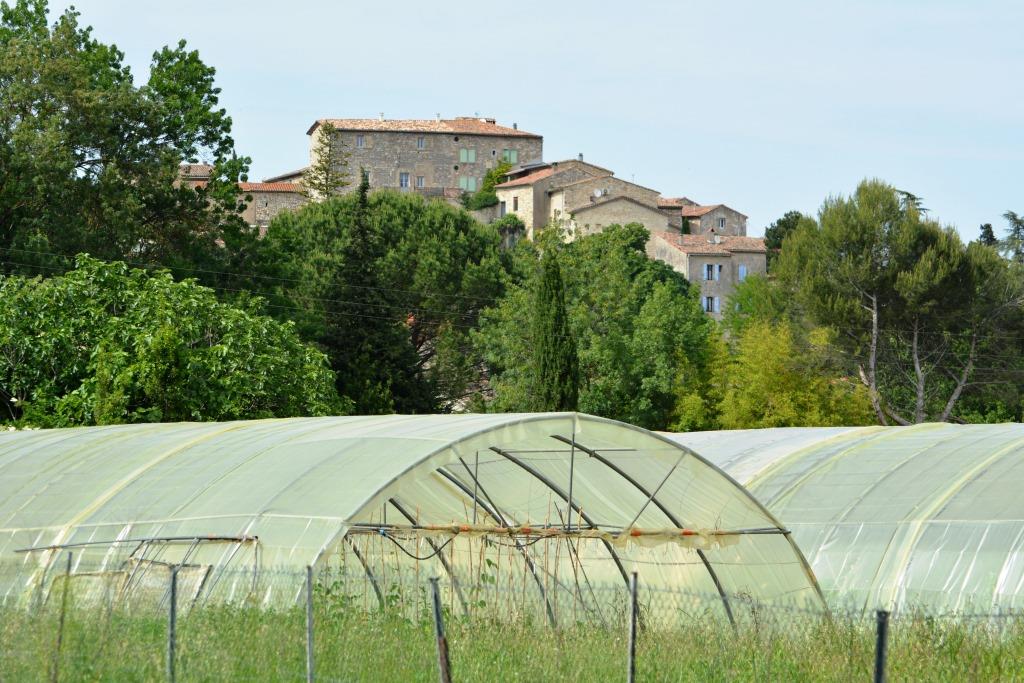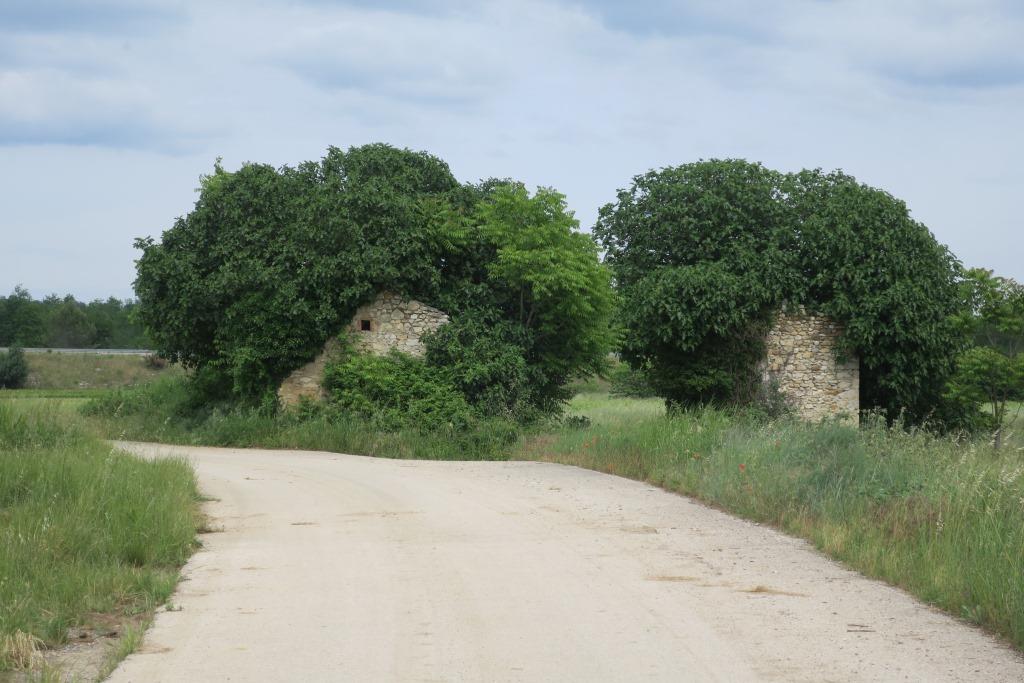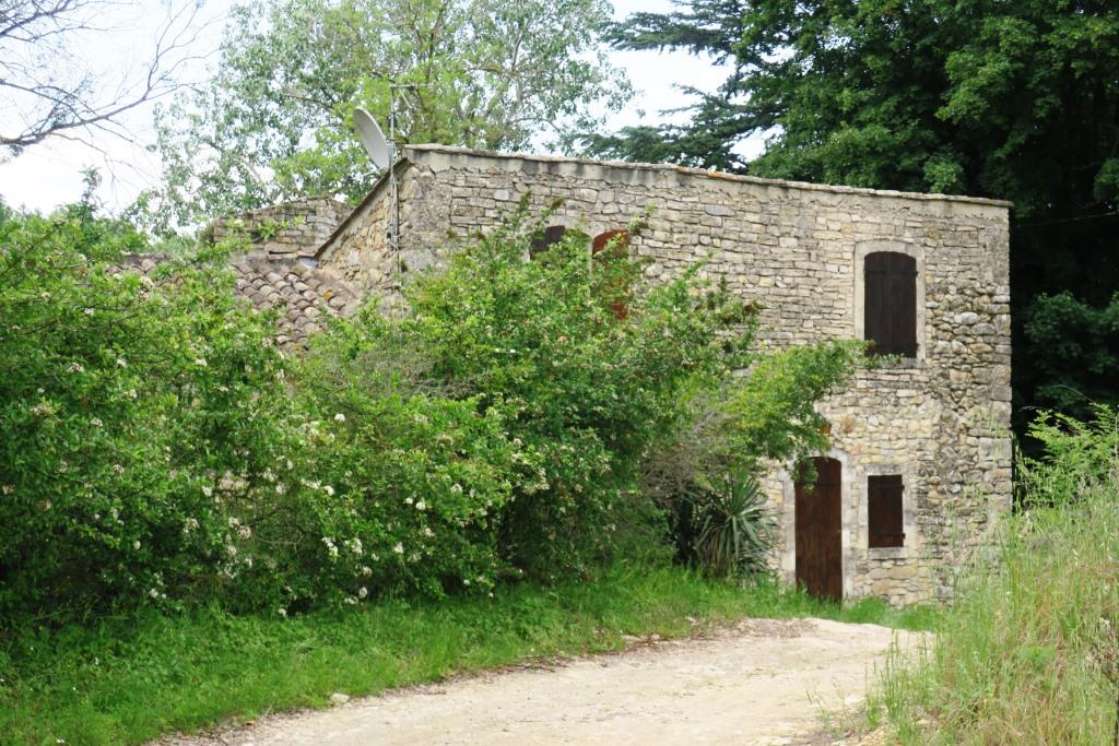 Nous poursuivons jusqu'à "Sous Mas" dans la forêt, empruntons le chemin situé entre les 2 bâtiments en pierre recouverts de végétation, puis longeons les champs et les vignes jusqu'au bord du Gardon.